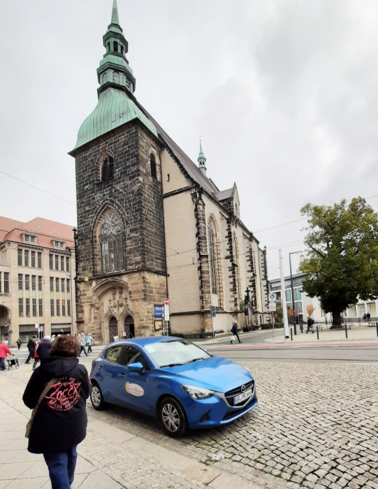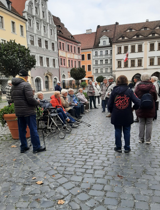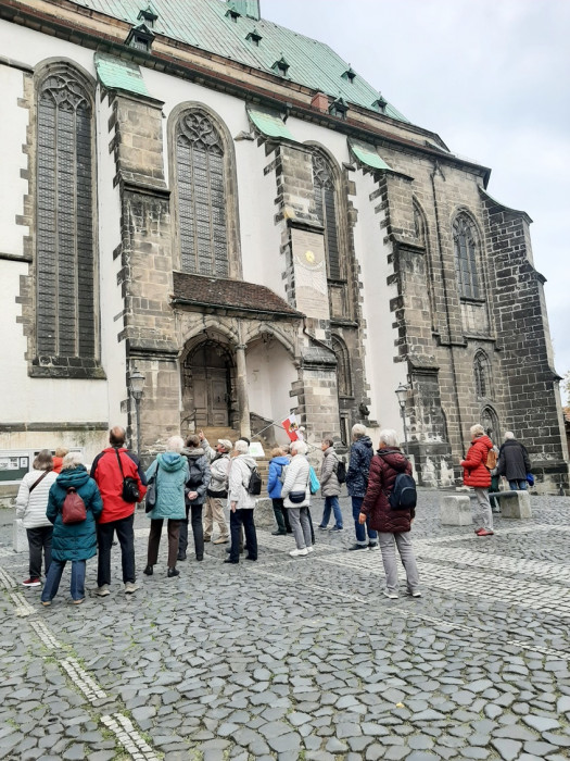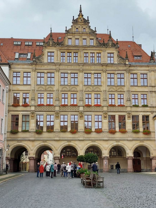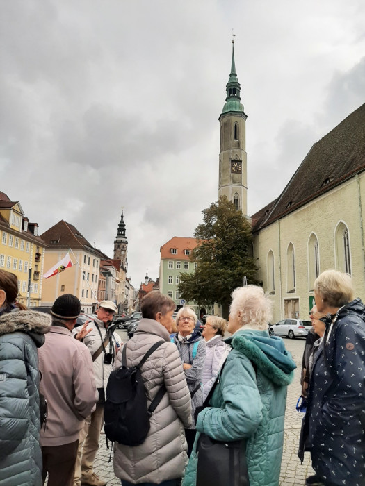 Der vorletzte Tag führte uns nach Görlitz in die Oberlausitz, die Stadt mit den meisten Denkmälern Deutschlands. Wir sind durch die Viertel des 19./20. Jahrhunderts gefahren und haben die übrigen Gassen der Altstadt entdeckt. Dieses hat unser Reiseleiter Andreas mit uns gemacht. Jeder, der wollte, konnte die Treppen rauf zur Pfarrkirche St. Peter und Paul, da dieses sehr beschwerlich war, haben die meisten es gelassen (Treppen waren sehr steil nach oben). Nun hatten wir 2 Stunden Freizeit, einige gingen über die Grenze nach Polen, die anderen suchten sich ein Lokal, um etwas zu essen und zu trinken.