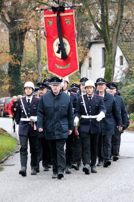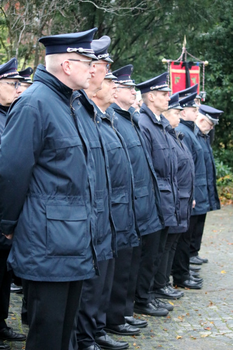 Zum Abschluss legten dann - musikalisch untermalt - die Anwesenden ihre Kränze und Gestecke nieder. Die Garsteter Feuerwehr ludt im Anschluss zu Schmalzbrot und Grog in ihre Hallen.