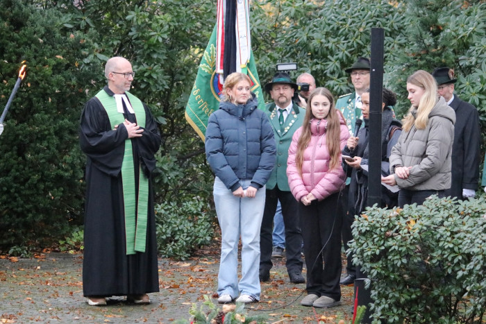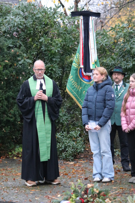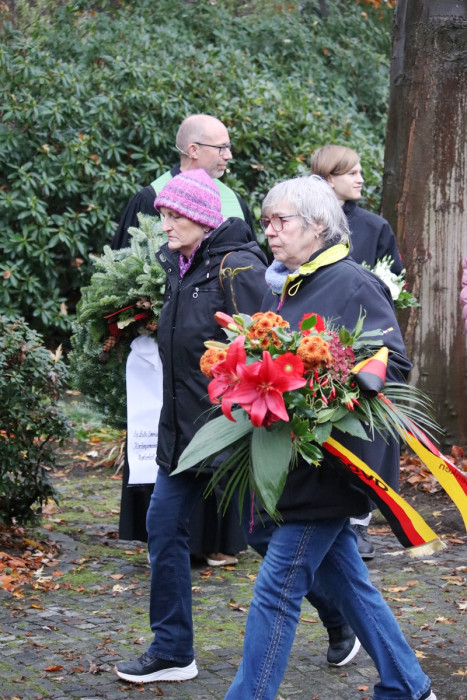 Auch an diesem Sonntag trafen sich Norderstedter Bürgerinnen und Bürger gemeinsam mit Vertretern der Stadt, von Verbänden und Vereinen am Mahnmal der Kirchengemeinde Garstedt. Auch der SoVD Ortsverband war vertreten.